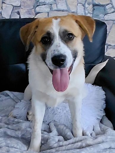 Chloe is a 6 month old Great Pyrenees/Aussie mix. She weighs 39 lbs and will be a large dog full grown. Chloe is good with other dogs, friendly, and loves chew toys. She is smart and eager to please. Her foster family is working with her on housetraining and she's doing well. Chloe is learning great leash manners and thriving, mostly because her foster family's dog, Athena, has been teaching her the ways.