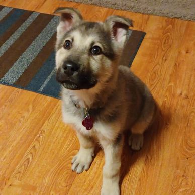 Yukon is a 14-15 week old Husky/German Shepherd mix that we rescued from the Mercer County Pound. He weighs 20 lbs and will be a large sized dog when full grown. He's doing great in foster care and loves to play with his foster brother, Loki. He's eating well and has lots of energy. Yukon gets along with other dogs and cats. He plays great with kids and likes everyone. Housetraining is going well, and he sleeps in the crate at night. Yukon will make a great dog for an active family, and he would love another dog to play with.